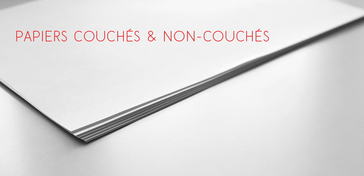 Il existe DEUX grandes famille de papiers, les papiers “couchés” (avec une surface couchée sur le papier, d’aspect brillant, semi-brillant, etc.) et les papiers “non-couchés” (papier sans traitement de surface, à la surface “mate” et naturelle).