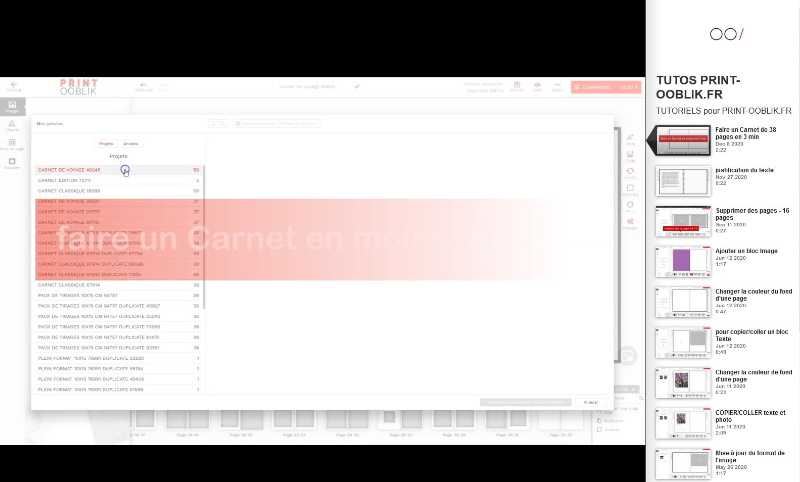 Nous avons réalisés des tutos vidéos pour vous aider avec notre éditeur en ligne, n’hésitez pas à les regarder pour découvrir les fonctions basiques et avancées de l’éditeur et apprendre à faire le Carnet que vous aimez.